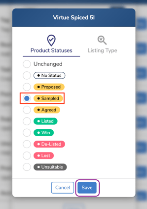- To Add or Update the product status, select the appropriate status and click ‘Save’. This will apply the status to the selected locations.