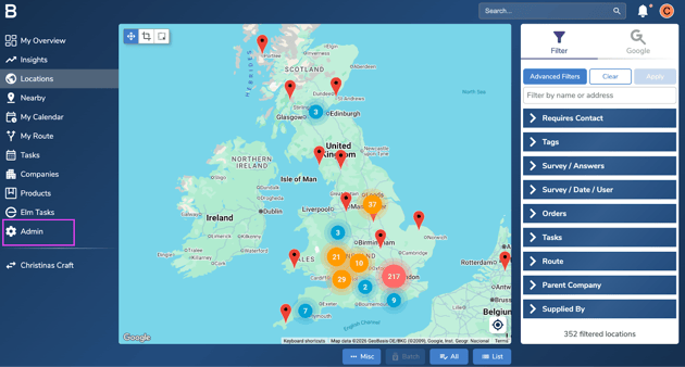 Navigate to Admin Tab on the account.