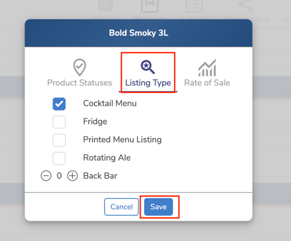 - Once saved, the selected listing type will appear next to the product name, as shown in the example below.