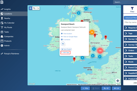 This article explains how to add Tags to a single location in Bowimi. Tags allow you to organise and track key information related to each location, helping you quickly understand their status, progress, or any important information at a glance.