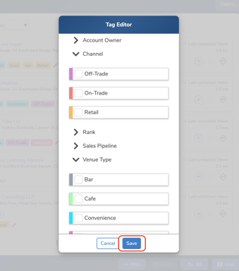 - Select the tags you want to apply to the location, then click “Save” to update the location with your selected tags.
