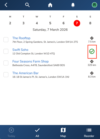 Once submitted, a tick will appear next to the location to indicate that it has been visited.