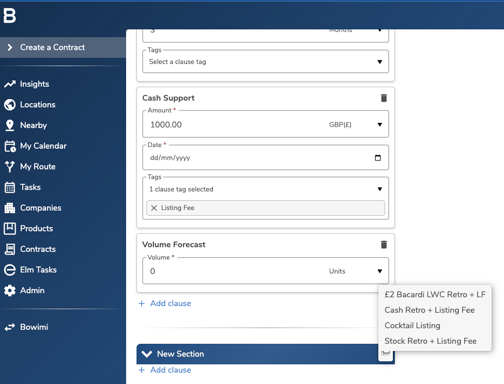 - Numbers are easy to replace for your team, so use the most common values to save your team time (e.g. if most of your retros are £1 per bottle, paying quarterly, then pre-fill a Cash Retro Support clause with Reward = 1, Currency = GBP, Condition = 1 unit, Payout Frequency = 3 months).