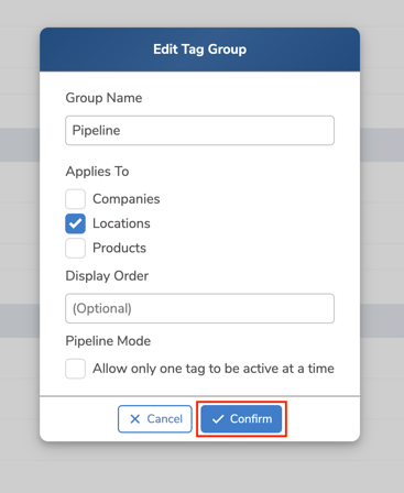 - Enter a name for the tag group, select the option to which the tag group should be applied, and click “Confirm”.