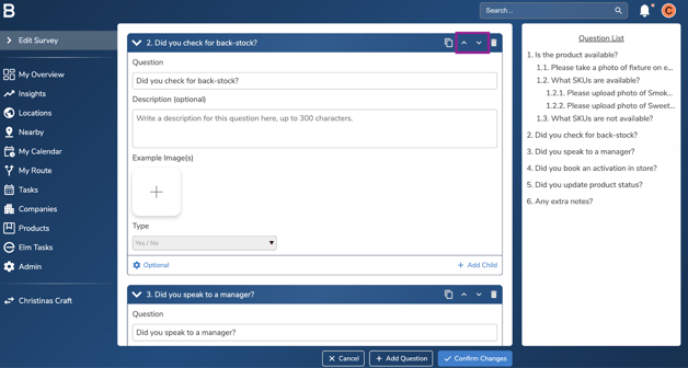 Surveys are essential for accurately capturing the data you need during location visits. They consist of a series of questions, which can be nested and include various question types. This guide provides instructions on how to modify a survey within the system.