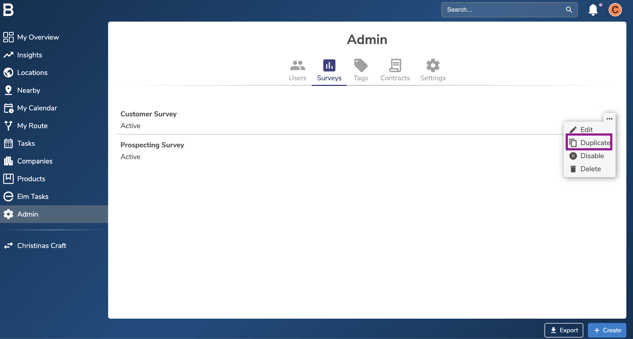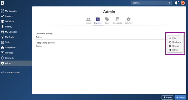 Click on 'Surveys' tab and click on the “...” next to the desired survey.