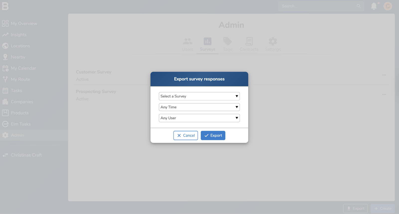 Filter the export down by survey, time frame, and user if needed and click "Export".