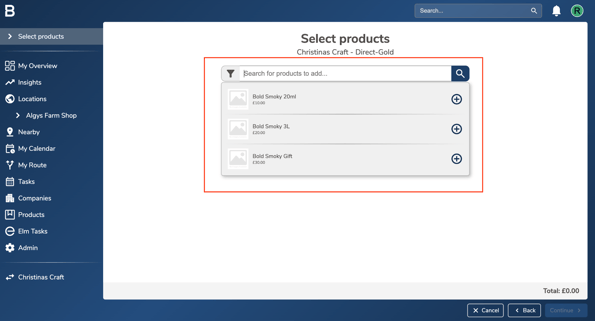 - Add the products you’d like to order by clicking on the search bar and selecting the relevant items.