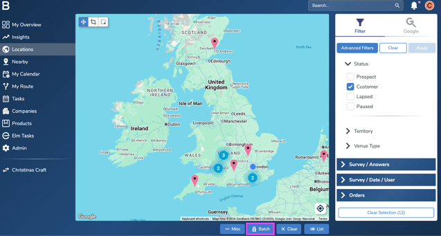 - After filtering the locations, click ‘All’ at the bottom of the screen and next click the ‘Batch’ option beside it.